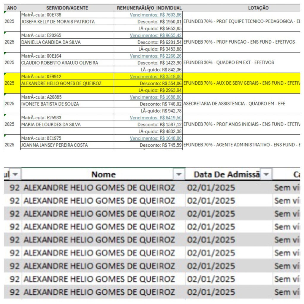 Informações detalhadas sobre a lotação, função, carga horária e horário de trabalho dos servidores pagos através da folha e dos mais de 300 servidores ou beneficiários pagos por empenho com recursos do FUNDEB;